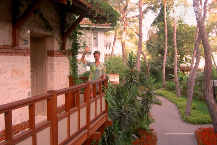 Мы отдыхали в Улусой-Кемере в августе 2007 г. с подругой. В целом можно сказать, что отель для семейных пар с детьми. В равных долях здесь отдыхали немцы, русские, турки, итальянцы, французы и украинцы. Территория очень живописная: сосны, цветы и куча растительности, красивые двухэтажные бунгало. К сожалению строений на территории очень много, ходить между ними нужно по узеньким тропинка, выложенным типа брусчатки, и из-за этого прогулочная территория ограничивается на около барно-бассейную и соответственно пляж. В рекламе территорий выглядит огромной.