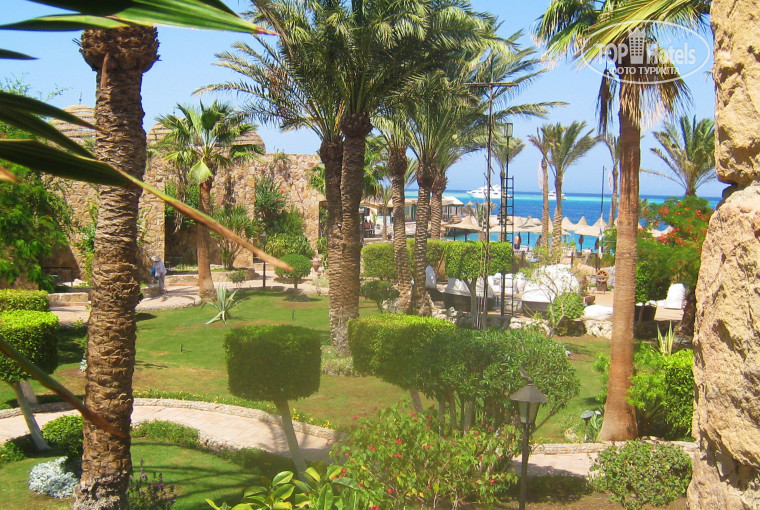 Живописная зеленая зона с извилистыми дорожками, огромными пальмами, которые особым образом украшают территорию, кустарниками и деревьями, цветущими яркими цветами начинается сразу от пляжа. Обрамляют эту зону двух-этажные корпуса с видом на море, пальмы и прочую растительность. Чувствуется забота и уход за каждым уголком этого вечно-зеленого сада.