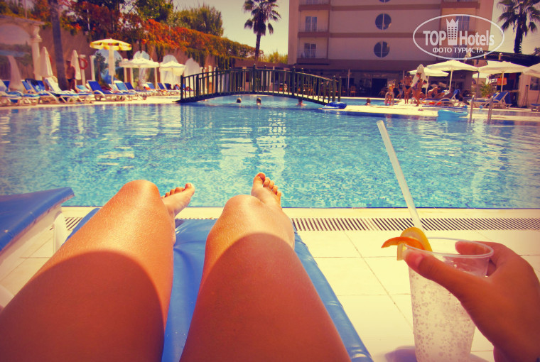 Здравствуйте! начнем с того,что приехали мы в отель в пять утра. Нас конечно же не заселили. Ладно, бросили вещи на ресепшен (переоделись в туалете...) и пошли на море. Идти конечно,далеко, но смириться можно. за лежаки приходилось чуть ли не бороться! Свободных мало. Люди занимали с самого утра. Ну да ладно...пару слов о море. Море ,пожалуй,самое приятное из всего путешествия. Жаль оно очень соленое. С ранками не зайти.берег пологий. Все едут отдыхать с детьми. Кругом одни маленькие дети! Ох,если бы мы знали,что там их будет так много! Вечно плачущие.. Теперь об отеле. Отель на 3+. Территории нету совсем. Один лишь бассейн. Оооочень слабая 4ка у него. Я бы дала ему тройку. Персонал не знает русского! из приветливых были лишь уборщицы! Питание 4+. так как я люблю рис и курицу,зелень, то мне понравилось. Но если вы едите с мужчиной...Разочарование! Мяса 0. анимации 0! У Левы на рынке не за что экскурсии не берите! Он обманывает..И туречкие сладости в коробках не покупайте!