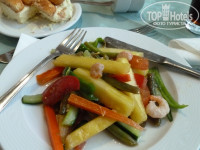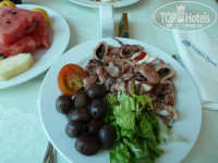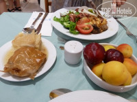 Питание - да!!! Очень понравилось! Чудесные слойки с творогом и зеленью на завтрак, каждый день на обед и ужин морепродукты, рыба и мясо всегда в разных вариантах, вкуснейшая баранина клефтико, тающая во рту, мусака, цацики, фрукты, десерты, мороженое, постоянно был салат типа греческого, все такое качественное и домашнее, просто восторг! (Действительно, чтобы моя дочь с удовольствием ела баранину – это чудо из чудес). Мы брали все включено, но смысл это имело только ради неограниченного доступа к прохладительным напиткам и мороженому, т.к. с ребенком. А съесть что-либо сверх съеденного на завтраке-обеде-ужине оказалось физически нереально)))). В следующий раз решили брать только завтрак-ужин, тем более на ресепшн можно бесплатно взять в номер чайник.
