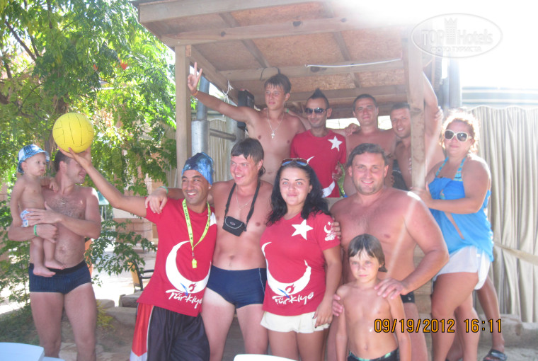 Добрый вечер!!! Отдыхали в сентябре, вернулись с отпуска очень довольные. Отдыхали с семьей муж и 2 детей. Отель соответствует своей ценовой категории. Хорошая анимация для детей, аниматор Андрей молодец! Еда нормальная, хотелось для разнообразия морепродуктов. Территория действительно зеленая, первая линия к морю, как и обещал туроператор. Море отличное теплое лазурного цвета, пляж песчаный чистый. На территории есть Турецкая баня - отличная, советуем посетить её в первый день приезда, чтоб равномерно ложился загар. Бассейны, водные горки - все как на картинках не обманули. Мы любители активного отдыха и мы его получили, на пляже почти не лежали, не хотели себя чувствовать селедками, поэтому, активно принимали участие во всех программах, которые проводили аниматоры. Аниматоры самые лучшие на побережье Аня, Даша - the BEST!!! Йохан, ЧаЧа, Джозеф - FOREVER!!! Спасибо ребятам за отличное настроение, так держать!!!))) Мы отдохнули на все 100 %!!!