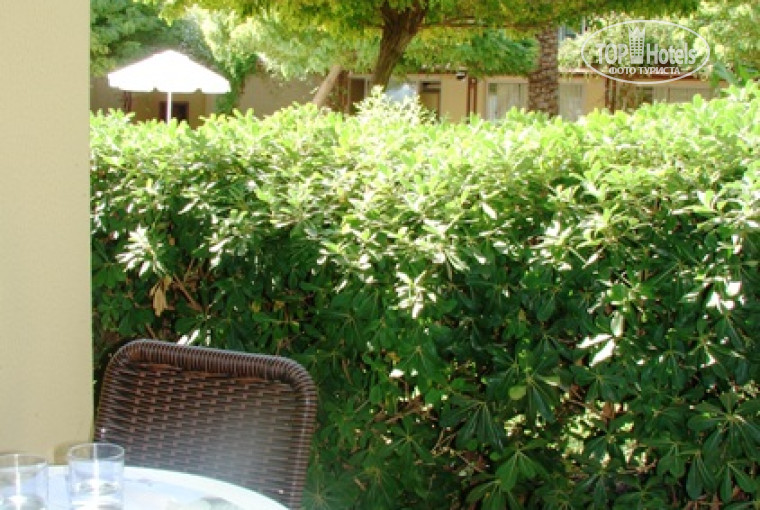 Территория отеля большая и зеленая. Но зелень - это газоны, кусты и пальмы. т.е. погулять днем не судьба - пальмы от солнца не спасут, но оно было понятно и при покупке билетов, пустынная местность, никакой хвои.
