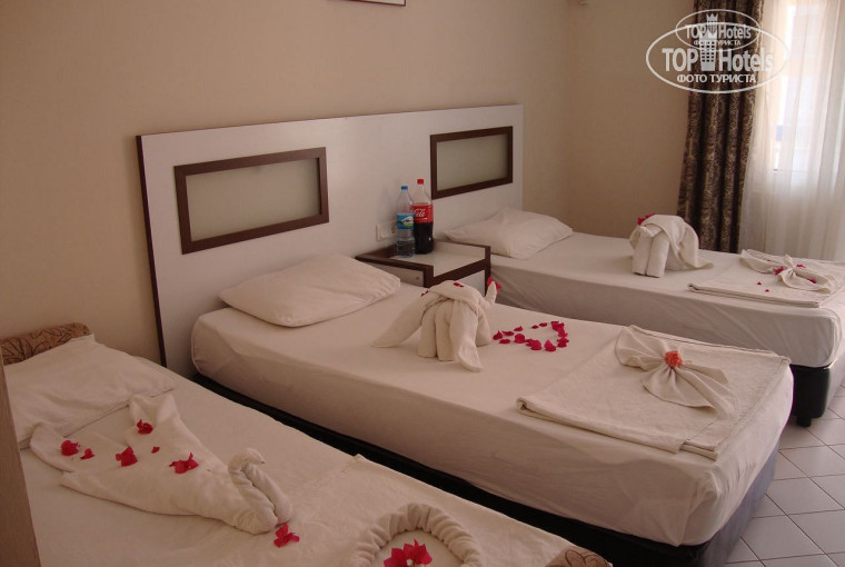 Ездили семьей, с ребенком 4 года. Номер стандартный, чистый, есть полотенца, фен, телевизор-немецкие и турецкие каналы, кондиционер, балкончик, а сейф и интернет -платно.