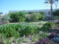 Номера большие. Мебель не дешёвая (когда-то была), но старая. Благодаря классическому стилю интерьера, всё это слегка отдаёт антиквариатом, только не как в Лувре, где всё начищено, а что-то типа хорошего краеведческого музея. В ванной то же самое – большая классическая столешница с большим же зеркалом + маленькое с увеличением и подсветкой – слегка отвлекают от старенькой ванной с жёлтыми пятнами от воды и местами чумазой затирки на полу. Хотя менять, конечно, пора уже всё, и столешницу с зеркалом тоже. ТЕМ НЕ МЕНЕЕ, работало в номере всё: индивидуальный кондиционер с пультом – без нареканий, холодильник, сейф (бесплатно), фен в ванной тоже хороший, душ в порядке, вода протекает нормально. По ТВ несколько русских каналов. У нас был 1-й этаж, терраса представляет собой выход на лужайку (газон) через стеклянную дверь, там стоит столик и 2 стула. Можно прямо оттуда в бассейн ходить.
