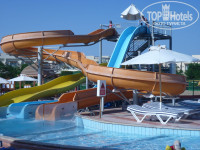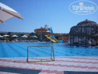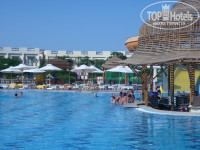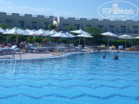 Корпуса отеля представляют собой двухэтажные здания, построенные в виде окружности довольно-таки большого диаметра. С внешней стороны окружности находятся двери (вход в номер), а с внутренней – балконы и террасы. Таким образом, ни один из номеров не будет окнами выходить на дорогу, у всех номеров вид на внутреннюю территорию отеля. В центре этой территории находится бассейн с лежаками, горками и баром (pool bar), там же можно получить полотенца. Бассейн неглубокий, вода очень тёплая, там же находится и детский бассейн. Если у вас номер на 1-м этаже, то вы можете прямо из стеклянной двери террасы выходить к бассейну. Шума от бассейна в номере вы не услышите, так как от номера до бассейна вам ещё нужно будет пройти метров 30 по симпатичному газону, причём по пути вам ещё может попасться искусственная речка с мостиком, беседка или площадка для пляжного волейбола – в зависимости от расположения вашего номера. Рядом с корпусами находятся домики с сауной и джакузи, тренажёрным залом, бильярдом (1 стол) и настольным теннисом. В отеле FRONT тоже есть бильярд (3 стола). Если вы захотите прогуляться в сторону отеля Front (пешком на пляж), то вам по пути попадётся детский клуб, далее – конюшня с площадкой для верховой езды, далее – футбольное поле. И только потом, перейдя через дорогу (вроде проезжую, но всегда пустую) вы окажетесь на территории отеля Concorde Front. В общем до пляжа примерно 1 км, рекомендую пользоваться мини-бусом (не напрягает вообще – подробности в описании пляжа ниже). Где-то ещё есть каток (платно), но мы до него не дошли. Верховая езда тоже платная, но на лошадок посмотреть можно совершенно бесплатно.
