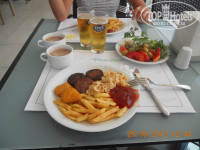 13. Основной ресторан достаточно большой, но в час пик найти отдельный столик проблематично. За несколько минут до начала обеда и ужина, как правило, начинала у входа собираться очередь. Если не спешить, то позже появляются и столы, и блюд меньше не становится. Шведский стол - все удобно, достаточно красиво, выбор весьма не плохой (даже для проблемных желудков). Мясо в основном птичье (индюки и куры) - гриль и жареное очень неплохое, тушеное на любителя (мое мнение). Между обедом и ужином дают гамбургеры (можно самому их составлять) и мороженое.