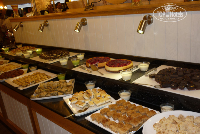 3. Питание. Нам очень понравилось. Хотя на мой взгляд питание это очень субъективный момент (как говорится на вкус и цвет...) Нас лично устроил и ассортимент и качество приготовленных блюд. Выпечка выше всяких похвал, хороший выбор сыров, мясных блюд также на мой взгляд было достаточно. Понравилось пиво, из вин мне лично понравилось розовое, меньше белое, красное совсем нет. Из коктелей пили мохито - так... Соки-химия типа "Юпи", фреши за денежку. Про детский стол не скажу, но он есть и мы периодически брали себе там куриный бульон с кусочками курицы, добавляли отварные овощи, рис и получался неплохой привычный супчик, т.к. на основном столе выбор супов состоял из одного и не всегда съедобного (на наш вкус), понравился только чечевичный. Есть один аля карт ресторан (кол-во посещений по-моему не ограничено по предварительной записи на ресепшн), но мы до него не добрались. В снек-баре хороший выбор перекусов (крошка-картошка и пицца с начинками на ваш выбор, шаурма, всякие печенюшки, мороженое и пр.), тут же рядом палатка с турецкими лепешками и айраном.