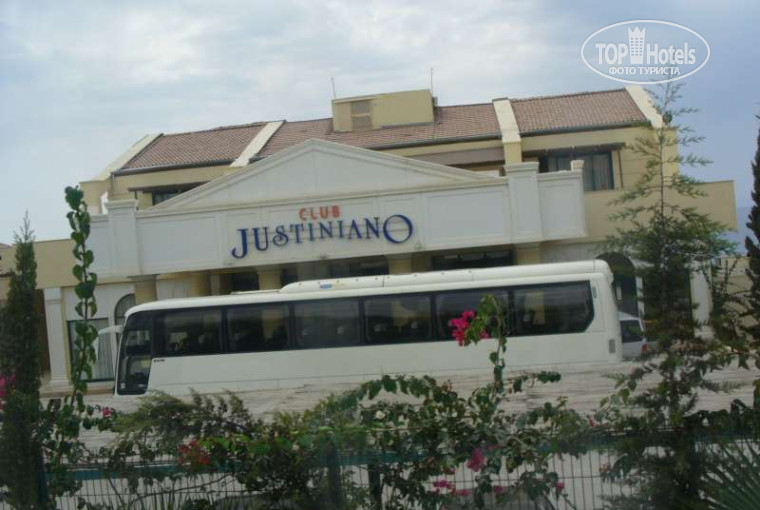 Территория - не большая, но уютненько. Немного раздражает лестница, ведущая от гл.корпуса к ресторану и далее к морю (особенно после ужина!). Бассейн по размерам - средненький и без подогрева, но зато есть две, правда не очень большие, водные горки - прямая и кольцевая (см. фотки в описании отеля) и на сайте: www.justinianohotels.com