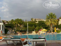 Недавно вернулись с отдыха (были с 02 по 12.10.2007). Перед поездкой прочитали многие отзывы об отеле, слегка подрасстроились.Расскажу всё по-порядку. Летели мы от ACADEMIA, принимающая фирма-CATTTOUR-встретили хорошо, посадили в 2-х этажные автобусы с хорошими кондишенами,каждому полагалась бутылка воды. Ехали от аэропорта до отеля часа 2, в это время гид рассказывала основы пребывания в Турции (какие деньги, как себя вести в отеле и за его пределами, что означают некоторые слова, шутки)- в общем полезная информация, дорога не была напряжной. По дороге заехали на стоянку - кому в туалет(бесплатно), кому в магазин (скажу сразу - не покупайте парфюм, вам предлагают его в среднем по 30 баксов, в дутике этот же товар по 40 евро, а в Алании - по 5 бачков, так что делайте выводы сами). По приезду в отель выяснилось, что наш автобус с туристами сегодня уже 3, поэтому к реценшен было не пробиться (человек 150 приехало-все русские), а номеров свободных ещё нет, так как мы приехали слишком рано- в 11 утра, а номера освобождаются только в 12. Короче, 2 часа мы безуспешно пытались ждать (правда браслеты нам одели сразу и разрешили пользоваться баром рядом с рецепшен). Потом, чтобы хоть как-то разрешить ситуацию нам наш отельный гид(Сунай) предложил на одну ночь заселиться в семейный номер-полулюкс № 219 (это кошмар!!!- входишь-маленькая комнатушка:2 кровати, посредине тумбочка, далее-совмещенный туалет с душевой кабиной, и ещё далее - комнатушка с 2-х-спальной кроватью, при этом кондишен, телевизор и холодильник - только в последней комнатке!). Назавтра мы естественно переселилисьуже в нормальные номера (мы заказывали два 2-х-местных номера). Хоть так, а некоторые отказывались селиться временно и ещё часа 2-3 торчали в холле, а мы в это время уже купались. Ну, каждый решает сам. Это было то, что касается орг.вопросов. Далее - номера.