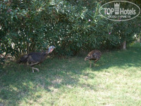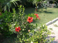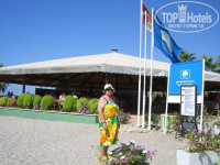 Теперь о пляже. К нему прямо от отеля ведет подземный переход под дорогой, стилизованный под деревенскую улочку, по которому пройти одно удовольствие – идешь по тенистой улочке, звучит музыка, можно посмотреться в зеркало. Это удобно, когда идешь с пляжа, и нужно поправить внешний вид. После перехода дорога на пляж идёт вдоль ухоженного сада с красивыми растениями – цветами, деревьями. Садовнику ещё раз благодарность! Фотографии в саду получились замечательными, особенно те, которые сделал отельный фотограф (дороговато, конечно, 5 долларов 1 снимок). Здесь же находится небольшой живой уголок – кролики, куры, утки, индюки, собаки (любопытно посмотреть и детям и взрослым), и детская площадка с качелями и горками, а также теннисный корт. На пляже расположен хороших размеров бар, в котором в тенечке под куполом можно перекусить (здесь пекут вкусные лепешки с разными начинками и пиццу, есть и другая еда –салаты, сосиски с гарниром и т.п.), можно выпить чай-кофе или что-то прохладительное – пиво, коктейль, сок, айран. Бармены очень приветливые, всегда поинтересуются, как ваши дела, как вам нравится отдых. Привет Юнусу. На пляже шезлонги стоят под тентами, что очень удобно – хочешь загорай, хочешь отдыхай в тени. Шезлонгов много, в любое время есть свободные. Пляж песчано-галечный, вход в море пологий. Глубина начинается недалеко от берега, в 5-6 метрах. Для купания я бы посоветовала приобрести специальные спортивные тапочки. Они продаются и в магазине при отеле, и рядом с отелем, стоят 10 долларов. Удобно - и при входе в море ногами на камушки не больно наступать и по горячему песку без проблем идёшь. Во время нашего отдыха прямо напротив пляжа два раза наблюдали приплывших поиграть дельфинов. Красавцы! Аниматоры говорят, что это бывает довольно-таки часто.