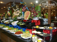 Ресторан занимает довольно большую площадь, кроме того, часть столиков находится под открытым небом, что удобно для курильщиков. Есть специальные стульчики для детей. Питание, мягко говоря, усиленное. Несмотря на то, что отель был заполнен гостями на 100%, еды хватало всем и всегда. Если что-то заканчивалось, тут же добавлялось вновь. Ассортимент блюд очень хороший - на любой вкус, особенно на ужине, когда ко всем блюдам , приготовленным на кухне, добавляются ещё блюда, приготовленные на гриле и во фритюре на улице рядом с рестораном. На завтраке, кроме обычных для отельных ресторанов продуктов, всегда был хороший выбор выпечки, а также манная каша, что немаловажно для семей с детишками. Порадовали повара и супчиками в обед – чечевичный, борщ и даже солянка, и десертами в ужин – их было столько, что мы не успели всё попробовать. А какие вкусные! Фрукты были и утром, и в обед, и в ужин: арбуз - всегда, видимо как раз его сезон был, и по очереди – яблоки, груши, виноград, апельсины. Всё вкусное и в большом количестве. Официанты-молодые ребята, были очень расторопны, и сами всегда аккуратные, подтянутые, обязательно с улыбкой, с шуткой, очень внимательны к детям. Обслуживание понравилось, молодцы!