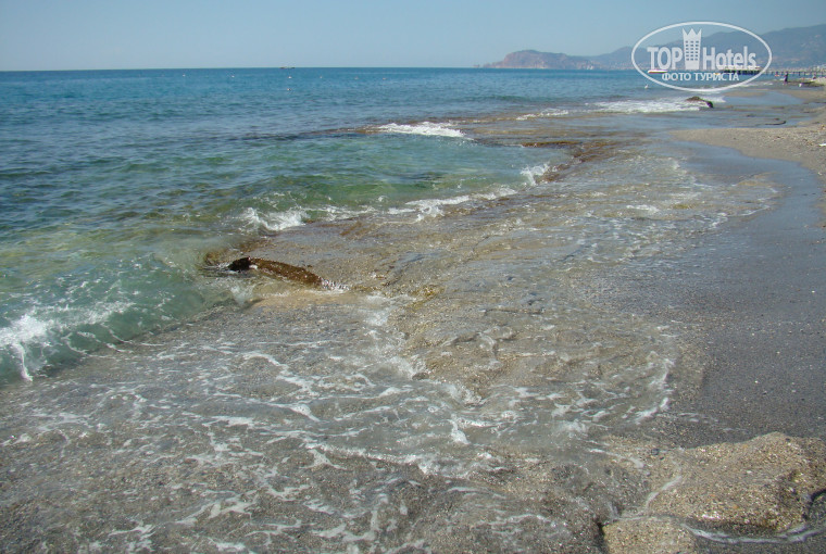 1) ужасный заход в море на пляже. в воде обломки бетонных плит, частично заросшие склизким мхом. без специальной обуви, особенно при волнении на море зайти не упав и не ободрав ноги практически невозможно.