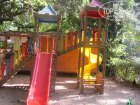 со стороны моря есть общественная детская площадка, там больше качелей и горок, есть также тренажеры для взрослых, она нас тоже не раз выручала.
