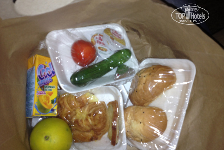 Выезжали мы из отеля рано и нам был положен сухой паек, скажу сразу НЕ БЕРИТЕ! туда входит : две обычные булки, два типа круасана без начинки, зеленый апельсин (хотя может это был и лимон мы так и не поняли) огурец (умерший еще три дня назад), помидор, масло сливочное и пакетик сока. И всё это втаком виде словно это уже раз 500 развернули потом опять свернули и вам впаривают.