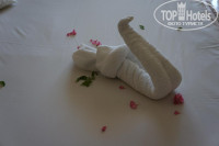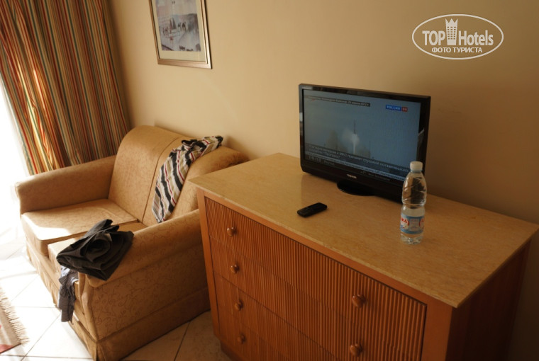 Размещение: хотелось попасть с видом на море, но нам сказали, что номер освободится только завтра. Показали еще номер почти у моря, но там были 2 раздельные кровати, что нас конечно не устраивало. Были еще номера, но за них нам предложили (внимание!!!) по 20 $ с человека. Не трудно посчитать, что 40 баксов в день на 7 дн. итого почти в 10000 кровных рублей переплата…это конечно огорчило. Попытка договориться даже наедине с менеджером успехом не увенчалась. Он сказал, извините, но у нас в отеле денег не берут…может конечно честный попался… а может это и действительно так. Что в принципе неплохо. Иначе заселяли бы вообще в полную ж… а потом просили денег за конфету. Ну в общем попали мы в номер подальше, поближе к рецепшену, с выходом прямо на лужайку с игровой площадкой для детей и бассейном (там где находится вечерний ресторан у бассейна). Сразу видно что номер позиционировался как Family room, то есть семейный. Размером он больше всех остальных где то в 1.5 раза… Сам номер чистый…мебель нормальная. Не новая, но в идеале. Возможно грязноватые занавески, но это объясняется постоянным хождением на улицу через балкон. Во входную дверь мы только заходили, уходили через балкон. Да и гости всей толпой через балкон (вернее через лужайку, балкона там нет как такового). Полотенца и жидкости менялись регулярно, к постельному тоже претензий нет. Мы ж их грязью не мазали ежедневно. Воду в номера не носили. Можно брать в баре самостоятельно неограниченное количество в 1,5 л бутылках. За размещение поставил бы 4- это если в общем, но за свой номер 4+…