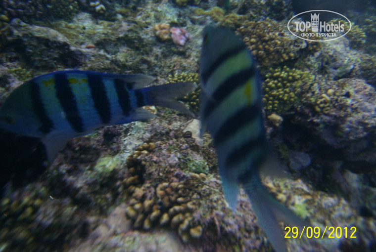 Посетала этот отель с сестрой и племянницей в сентябре этого года. Заселили нас минут через 20, сначала предложили пообедать в ресторане. Номер оказался в крайнем коттедже с видом на соседний отель. Мы не стали ничего менять и это к лучшему. Нас никто не видел, спокойно и тихо. Понравилось, что отель спокойный, большая территория, очень чистая и ухоженная. Много бассейнов, поэтому ощущение, что в отеле мало гостей, никакой суеты, много свободных лежаков. Читала негативные отзывы по поводу питания, не знаю, ни к чему придраться не могли. Конечно, борщей и пельменей не было, мы же не вв России, но питание очень хорошее, все свежее, разнообразное, много выпечки (очень вкусной). Может, фруктов маловато, но я фрукты не люблю, поэтому меня все устроило. Номера у нас убирали каждый день, если вдруг не меняли какое-нибудь полотенце, то просто звонили "0" со стационарного телефона в номере (это номер на ресепшн, если возникаают какие-нибудь проблемы) и тебе принесут не одно, а три. Нас это очень удивляло и веселило. По поводу персонала... Персонал в целом очень приветливый, иногда даже слишком. В ресторане всегда белоснежные скатерти, салфетки. Ни разу не видела, чтобы официанты стряхивали на гостей крошки, бред какой-то. Все на должном уровне. Единственный минус, кофе и чай только на завтрак. Мы, русские, все же привыкли после обеда и ужина попить чай, тем более с тортом или пирожным. А из напитков только вода, кола и тому подобное. Чай и кофе только в барах. По поводу моря. Если кто хочет занятся снорлингом, маску, трубку и ласты купите в ближайшем от отеля магазинчике, намного дешевле, чем покупать у нас, в России. Маска с трубкой 17 $, если хорошего качества, ласты около 10$. Тапки пляжные защитные 5 $. Чехол для фотоаппарата для подводного плавания 15$. Съездили на экскурсию на яхте один раз, накупались вдоволь, но рыбок больше намного в море у отеля. Вдоволь нафотографировала, очень красиво. Море, конечно, очень чистое и теплое. Просьба, не кормить рыбок. Этого делать нельзя Наблюдала, как одна компания забавлялась, кидали в море хлеб, сказала пару "ласковых", оказались русские, говорят, ребенку хотели рыбок показать. Чему хотели этим ребенка научить, непонятно. Разве что сделать из Красного моря Москву-реку. Да, и еще... Читала тут в отзывах про бармена Мухамеда, он рабботает в баре у бассейна,про его,мягко говоря, нелюбовь к русским. Испытала это на себе в полной мере. Я средне говорю на английском, так что-нибудь попросить, поблагодарить, а вот послать - нет. в полной мере высказать свой негатив на английском не могу. Первый раз, когда он проигнорировал мою просьбу, я стерпела. Через день та же история. Я попросила 2 пива, он посмотрел на меня с видом "Ага, сейчас, разбежался", стал собирать какие-то чашки, мыть их, я гневным голосом на повышенных тонах спросила, как долго мне ждать? Он с недовольной физиономией налил 2 ПЛАСТИКОВЫХ стакана. Я такого отношения к себе терпеть не стала, я приехала сюда отдохнуть и хочу, чтоб ко мне относились подобающим образом, как к желанному гостю. Поэтому я сделала проще, вечером сходила на ресепшн, долго описывать не буду, но дошла до директора (или хозяина, не знаю, как у них правильно называется) отеля. Мне сказали, что до меня русские ни разу жаловались, я первая. (Надеюсь, не последр=няя, кто не хочет мириться с хамством). Результат - нам вечером пр