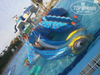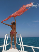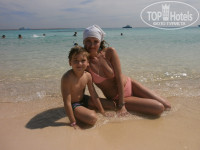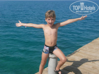 НО минус один мелководье вход в море плохой камни но с одной стороны все-таки песочек есть зайти можно(я знала об этом готова была)можно с понтона заходить,вода чистая,как я и думала ребенок все равно не вылезал из бассейнов,туристов пляж особо не напрягал,на фото это экскурсия на райский остров,советую взять,