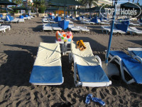 Берег в основном песчаный, встречается галька от мелкой до размером с пятирублёвую монетку. Зонтиков много, свободные лежаки всегда можно было найти. Но повторяемся, что отель был не заполнен. Полотенца выдают или меняют с 8.30 до 18.30.