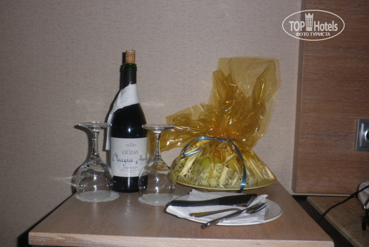 В первый день спали после обеда, т.к. перелет был ночной, постучали, сказали рум сервис, принесли тапочки, вино и фрукты, груши были очень очень вкусные. Вино забрали домой( уже выпили, очень понравилось). Потом тоже, был дождь спали днем, опять рум сервис, открывал ребенок, поменяли воду и соки, в шутку было сказано, а пиво, дали две бутылки, муж спросил еще, дали еще две и все без напрягов, но с благодарностью с нашей стороны.