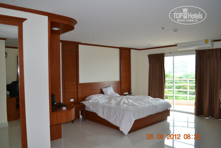 Выбирая отель, мы (ездили с женой Мариной после свадьбы) руководствовались отдаленностью от моря и мест развлечения. В тур фирме нам сказали, что отель очень спокойный и находится немного в стороне от центральных улиц. В тоже время, до центра Патайи 5 мин на тук-туке, до пляжа 5 мин ходьбы. Сразу скажу, что купался там один раз, на мой взгляд, очень грязная вода. Пляж Кози Бич. Остальное время ездили на остров Ко Лан, там три пляжа, понравился один - пляж обезьян. Чистое, теплое, даже скорее, горячее море, народу немного, обезьяны реально с горы спускаются потрескать бананы, скутора, катера, маски, можно мало мальски перекусить. От пристани 20 бат с человека стоит дорога на тук-туке, занимает минут 10.