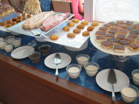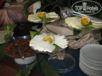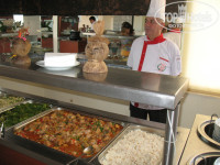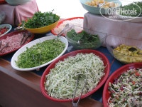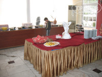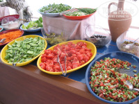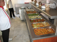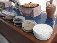 На питание мы не жаловались. Из закусок все необходимое имелось. Разные овощные салаты, зелень, молочные продукты, айран, простокваша, брынза, творог. В основном все свежее. На завтрак, правда, не всегда были яичница и блинчики. Постоянно курятина, соевые котлеты, были печенка. На десерт – разнообразные кондитерские изделия, халва. Также яблоки, арбуз, виноград, сливы. В баре два вида полусухих местных вин – «Medele» белое и красное, пиво «Эфес». Также водка, джин, ракия. На территории есть грузинское кафе с национальными блюдами за отдельную плату.