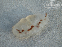 Пляж. Выход к бассейну и на пляж находится на -1 этаже (если выйти из ресторана и повернуть через метра 3 налево, будет окошко, в котором выдают пляжные полотенца по карточкам, которые дают при заселении, и дальше уже выход к бассейну). Большой пляж, много ракушек по кромке моря, вода очень теплая +28, чистая, правда пару дней у берега какая то фигня плавала, вода грязная была. С лежаками действительно лажа. В первый день пришли на пляж после завтрака в 7-30 – было почти всё занято полотенцами. Потом я пару раз приходила перед завтраком – свободные лежаки были, но выбор был ограничен ))) вообще то первый раз такое вижу, чтобы лежаки с 6-00 утра занимали – чушь какая то )))