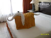 Приехали в отель в 5 часов утра. Заселяют по правилам после 14 часов, как говорили гиды. До обеда конечно провести время на ресепшене это просто не вообразимо, поэтому пришлось договариваться о преждевременном заселении за 50 долларов. Номер на выбор, выбрали двух комнатный с видом на аквапарк. Очень красивый вид! В комнате все чисто, убирались каждый день, полотенца не меняли, только если их на пол не бросишь, тогда поменяют. Каждый день делали красивые фигурки из полотенец.