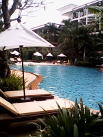 Отдыхали в Равиндре с 18.10 по 01.11.2012 второй раз. Лучшего отеля в Паттайе нет. НЕ высокие здания, красивая территория, три бассейна,отличные номера и замечательные завтраки. В отеле созданы все условия для спокойного. релаксирующего отдыха. По приезду нас поселили на втором этаже корпус С, но номер не понравился, так как из за деревьев солнце совсем не попадало в комнату,пахло сыростью, комары просто съели и что не мало важно не где было подсушить купальник. Попросили переселить и нас через пару дней перевели в корпус В на четвёртый этаж. Мы сделали вывод ,чем выше ,тем лучше. В первый приезд мы побрезговали есть в кафешках на пляже, о чём во второй приезд пожалели. Ели только там, все вкусно, особенно криветки в кляре. Там же договорились за 100$ о рыбалке на суперботе вдвоём с 9 до 17, наловили два ведра рыбы,а потом нам в кафе её пожарили (конечно не всю). Оба раза ездили с Библио Глобус, самый адекватный тураператор и по цене на тур и не считает день вылета и есть вожможность выбора аэропорта (Москва) и время (вылета, прилёта), удобное вам. Что касаеться экскурсий, никто не принуждает,не хотите не берите, на улице полно турагенств, вам выбирать. И ещё всётаки лучше отдыхать в первой половине октября- меньше людей и в отеле и на экскурсиях и в самолёте.