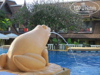 В верхнем бассейне так и не довелось поплавать, а в нижнем купались с удовольствием- красивые слоники и лягушки-фонтанчики, 2 уровня с водопадиком.Территория чистая-ухоженная.