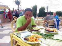 Всем привет! Вернулся в родную Уфу 24 ноября. Отдыхал 9 дней. Отель добротный, шикарный вестибюль, красивая мебель, статуи, удобный выход в мой любимый бар Аврора ). От отдыха взял всё возможное, что можно было получить. Принимал участие в различных конкурсах, соревнованиях, пел в караоке, танцевал и многое, многое другое. Аниматоры молодцы! Пахали на улёт, утром на пляже весёлое приветствие (очень поднимает настроение на целый день), далее аквааэробика, танцы живота для женского пола, соревнования, игры во французкие шарики (боча), пляжный волейбол, футбол... Заход в море в бухте супер. Песок, море тёплое, особенно вечером. С шизлонгами проблем не было. Полотенчиков всегда хватало. Единственный недостаток на пляже, это липучки арабы со своим массажем, прокатиться на суперсафари, мотобайки и.т.д. Правда я потом нашёл выход, что бы они меня обходили стороной. Просто напросто фоткайтесь с ними по чаще, они сами от вас будут бегать ))). И ещё мухи доставали, такие же как арабы, мелкие и приставучие ). Питание, пойдёт с пивом. Ел макароны, рис, мясо, зелень... От мучного воздерживался, дома хватает. В общем всегда оставался сыт и доволен. Посуды, да, бывало действительно иногда не хватало, это я о чашках и вилках с ложками. Но если немножко подождать и всё приносят. В этом плане я особо не заморачивался. А вот сок в столовой, обычный юпи. Нечаянно капнул на белые шорты красный сок, потом не смог отстирать, дома тоже после стиралки след так и остался. Так, что не лейте на себя данный сок! Про спиртное могу сказать только одно, если хотите нормально посидеть, отдохнуть, опьянеть ), пейте (только отдельно) джин. Из алкогольного коктейля я рекомендую Узо (анисовая водка) с 7-апом. Водка ни о чём, градусов 15-20. Пиво кому как, я не пью его вообще! В вечернее время аниматоры радовали своими юмористическими сценками. Некоторые товарищи тут писали, что было не интересно потому, что многое было на итальянском языке, но если есть чувство юмора, тому будет весело и прикольно! В конце вечера дискач в Авроре. Отрывались по полной. Правда народу на танцполе было мало, молодёжи мало (пансионат "Солнышко"))) ).В основном отдыхают пенсионеры, молодожёны и с детьми. Летом молодёжи гораздо больше! Что касается девчонок из Пегаса, то, нормальные они. На все вопросы с лёгкостью отвечают, рекомендуют куда лучше сходить, отдохнуть, повеселиться. Илья решил вопрос с кроватью при заселении. В общем минусов я в них не увидел! Про отель. Нас поселили в номер 1126. Когда пришли заселяться, номер был убран, чист, всё прекрасно работало. Кандёр без проблем охлаждал воздух, правда мы им редко пользовались, вредно же. Оставляли террасу открытой на ночь. Духоты не было. С сейфом решили проблему на второй день. Подошли на ресепшн и вместе со спецом пошли в номер, он показал несколько раз как им пользоваться, вопрос был снят на все последующие дни. Деньги с документами хранили только там! Кстати, как им пользоваться: открываете дверцу сейфа, там с боку на дверце во внутренней стороне есть красная кнопка, нажимаете её быстро вводите свой пароль до 8 цифр и нажимаете start. Всё, пароль сохранён. Закрываете дверцу, поворачиваете ручку на лево, сейф закрыт. Что бы открыть, нажимаете start, вводите код и ещё раз start, поворачиваете ручку до конца налево (около 7 мм.) и до конца на право, сейф открыт! Номера каждый день убирали, правда 