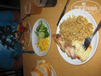 Питание это наверное самый большой минус данного отеля, давали в основном курицу, рыбы за 8 дней не было ни разу. Обычно дают рис, картошку фри (мягкая), нагетсы соевые, колбасу вообще не пробовали - выглядит она странно. Вообще блюд много, но все они на столько специфические и пахнут не приятно, не понятно из чего они приготовлены, поэтому даже не пробовали. Голодные все равно не оставались, иногда ели просто рис с огурчиками и помидорами. Часто был салат из макарон, соленых огурцов, перца, помидор и в соусе, своеобразно но кушать можно, один раз давали куриные шашлыки, очень вкусные. Хотя многие набирали полные тарелки, если вы готовы кушать блюда, которые не понятно из чего сделаны или что в них вам не важно, то тогда я думаю питание не будет проблемой. Очень вкусный кофе у них, но иногда если поздно на завтрак придешь, кофе с молоком уже нет, только черный.