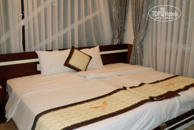 Отель безумно понравился, русскоговорящий хозяин отеля Григорий знает свое дело и очень помогает туристам по любым вопросам. При заселении он поднялся к нам в номер,все показал,рассказал как у них все устроено,показал как обращаться с сейфом,кондиционером, произведя безусловно первое приятное впечатление)И в целом персонал дружелюбный, все улыбаются,помогают)У нас был номер с видом на море и на город, на 11 этаже, с открытым балконом. С уборкой номера проблем не было, чистые полотенца ежедневно, белье за 11 дней меняли раз 5. Насчет заморочек с лебедями на постели(как это популярно,допустим, в турции)они не парятся, каждый день оставляли неплохие чаевые но ни одного лебедя к нам так и не приплыло))) Но это совсем не главное,.не в этом соль,как говорится) В номере кондиционер, телевизор с русским каналом(постоянно крутили старые русские фильмы. (Надо сказать,конечно,что русских вьетнамцы очень уважают) Частенько поднимались на 12-й,поплескаться в бассейне под открытым небом)) Завтраки-шведский стол, с 6 до 10 утра, есть время разгуляться, что называется), кормили очень вкусно и разнообразно, и рыба и мясо и фрукты,блинчики. морепродукты-мидии,креветки, .а еще там стоял повар, прямо в зале, и ему можно было заказывать блюда из яиц, мы заказывали пару раз глазунью и омлеты. все очень вкусно, горячее, прям с пылу с жару и что самое приятное-спешиал фор ю, и совершенно бесплатно) вообщем не проголодаешься), завтрака нам с лихвой хватало чуть ли не на весь день,есть вообще не хотелось,но до вечера так нагуливались,что конечно кушали в ресторанах,коих там великое множество на каждом углу..выбор кухонь разнообразный, цены оочень низкие, рублей на 150-200 можно плотненько поесть)). что вещи что продукты стоят очень дешево)) В отеле, так же, была отдельная комнатка с компьютерами с бесплатным интернетом, у сотрудников можно попросить чтобы сделали русскую раскладку,если ее не будет. очень удобно)