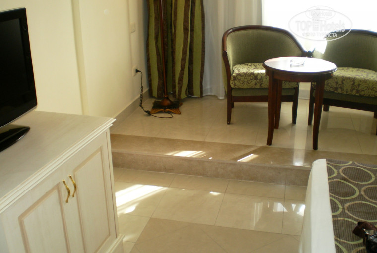 Внешне отель выглядит очень классно в европейском стиле с колоннами и балкончиками фонарями ,формой в виде улицы так что если вам лень далеко ходить просите не селить 5,6 а тем более 7 корпус правда при желании можно попросить вас довезти на каре и если еще не все разобрали велосипеде. Внешняя сторона отеля как я и говорил тянется как улица здесь выстоялись магазинчики и кафе ,тут можно и одеться и купить сувениры и поесть бутеры в Макдональдсе если питание отеля надоело там же в конце улицы находятся два банка . Персонал вежливый ,улыбчивый в основном все понимают русский язык. Обстановка и мебель очень красивая мне больше всего нравились огромные красные кресла в английском стиле. Бары расположены один в холе у ресепшена и на крыше у бассейнов. Бассейнов 4 шт два на крыше и два как бы во внутренних двориках в одном например неплохо загорать если ветер сильный на крыше. Питание вообще супер много зелени,выпечек,дисертов и если вы что то забыли взять вы можете попросить у официантов принести. Пляжи мне не очень понравились их там два коралловый на который смысл нет ходить если у вас нет обуви специальной и маски с трубкой тк позагорать и у бассейна можно ,а песчаный я думаю для отдыха с детишками подойдет , это небольшой кусок песчаного пляжа ,глубина тут небольшая но я видел как к берегу рыбы подплывали сантиметров по двадцать ,так же тут в обед можно пообедать если лень ехать в отель , но правда без изысков. Анимация тут слабенькая , на вечерних представлениях не очень много интересного ,а где то в 12 вечера аниматоры агитируют поездки на дискотеки довольно недешевые . Как итог для семьи отель отличный тут детишек и в дельфинарий под боком сводить можно и на шоу крокодилов ,а если вы тусовщики то лучше селиться в районе Наама Бей дискотеки и клубы все там.