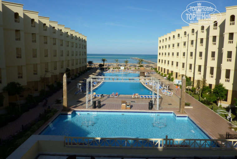 Территория - главный минус отеля, её практически нет, гулять можно только вокруг бассейна и на пирс, но его вечером закрывают, так что только вокруг бассейна. В окрестностях отеля - одни стройки, практически ничего нет, а в Хургаду каждый вечер ездить - напряжно. Кстати, забыл, вид из окна у нас был именно на стройку соседнего отеля, нас это не особо напрягало, но для полноты картины упомянуть стоит.