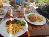сразу скажу я к чистоте очень привередлива, я сразу чувствую, насколько свежая пища,насколько чистые овощи ,и давно ли они порезаны и поданы на стол. в этом плане нареканий нет. молодцы. муж увидел ситуацию в ресторане,когда девушка,накладывая себе еду,уронила на пол ложку,к ней тут же подбежал официант,поднял прибор и унес его,а не положил обратно. для меня это важно,поэтому так подробно пишу. чисто и безопасно,я не боялась там есть. изысков нет,но пару раз были креветки и крабы.блюда на гриле каждый день. хороший бар на пляже,где так же по заказу нас обслуживали официанты,без всяких очередей. на каждом столе меню,можно было выбрать пиццу,гамбургеры,салаты и тд. все на уровне хорошей 5-ки.