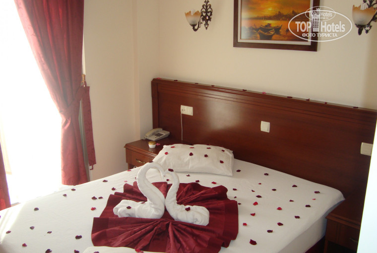 Отдыхали в этом отеле летом 2010. Приняла нас Турция без особых проблем, солнце, быстрое получение багажа, менеджеры Пегаса сделали заявку на автобус, все в белых рубашках, очень опрятные и улыбчивые. До отеля ехали недолго, вдоль красивого моря. С автобуса хотели свой багаж взять сами, но нас уже встречали, багаж менеджер внес, 5 минут на размещение и нам повезло. 2 номера в правом крыле. Один номер на 2 этаже выходил на другой отель, второй номер на 4 этаже-вид на бассейн. Фойе очень уютное. Поднялись на лифте, зашли в номер и были приятно удивлены новой красивой мебелью, цветами и конечно же лебедями. В ванной комнате все чисто, удобно, фен без проблем. Мебели хватило, чтобы все вещи разместить. Еда была разнообразной, хотя мяса особо не дождетесь конечно, но в один день ели потрясающую большую рыбу. Курица бывает, но редко. Очень вкусный запеченный перец. С утра всегда свежевыжатый сок, морковный, апельсиновый, яблочный. Вкусно готовили лепешки с мясной начинкой, давали часов в 5 вечера, так сказать перекус. Сладости-это отдельный разговор, сами видите по фото.. Хочу предупредить, у кого гастрит, язва, проблемы с ЖКТ- пища там острая! Через 3 дня у меня пошло обострение, пришлось ехать к врачу, там выписали лекарства. Потом уже ела рис, овощи не острые, фрукты и конечно же сладкое ). Не знаю как сейчас, но тогда было всё включено, пива обпились. Вино если там еще есть, гранатовое и сливовое если не ошибаюсь- очень вкусное было. Холодненькое под ужин. Вообще удачно поселиться в правое крыло. Насчет хамама, которое берете по экскурсии. Там всё хитро, нас обманули, так как были в первый раз. При массаже серьезно вам так говорят, что не так с вашим здоровьем, суставами, спиной и т.д. Вызывают девушку или женщину, та на русском переводит весь бред турка-массажиста, вы в это время уже напуганы, что-то не так. Они дружно предлагают вам волшебный массаж за доп.плату, который избавит вас от этого "недуга". Здесь хотя бы не вручить им много, меня надули на 15 баксов ). Поэтому при всех таких разговорах идите в отказ и пусть массаж продолжается по тем деньгам, которые заплатили изначально. При отеле вроде такого нет.. Много русских, поэтому в общении найти компанию проблем нет. До пляжа минут 7. Во второй раз ездили в Асдем парк 4*, но это уже другая история :)