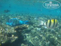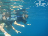 Отель сам по себе хороший.Комплекс выдержан в стиле Корнакского храма в Луксоре даже со священными баранами перед входом. Территория уютная, красивая и чистая. Персонал доброжелателен. Кто не хочет скучать: ребята - аниматоры развлекают и днем и вечером. Расписание мероприятий висит на доске объявлений перед входом в ресторан. На вечерние шоу перед ужином стоят и персонально каждого приглашают. В отеле один бассейн с подогреваемой водой, что оказалось очень ценным в это время года. Единственным негативом для меня была отправка отельным гидом Шарифом от Библио-глобуса на экскурсию в заповедник Рас-Мухамед на англоговорящей яхте. -----------------------------------------------------------------------------------------Теперь о главном, о море. Я читала в отзывах и уже знала о широкой лагуне Набк, о дальности ( 10 мин.ходом) моря, о дискриминации по цвету браслета и пляжного полотенца из-за чего не пускают на длинные понтоны ( плати 1-2 доллара), которые и ведут к теплому морю с коралловым рифом и замечательными рыбками. Поэтому взяла из дома свое большое вафельное полотенце, чтобы ходить с ним на пляж и прикрывать браслет. Да и таскать тяжелое махровое отельное не хотелось. Приходила на понтон сразу после завтрака - около 8-ми утра, когда охранника еще не было. А тот, который на другом конце, сторожит ячейки для одежды и исполняет роль спасателя, ему не до браслетов. Или думает, что я уже первому заплатила. Тот короткий понтон, на который пускают, доходит только до середины лагуны. Там небольшое углубление - по грудь, песочек и можно в принципе купаться. Но, во-первых, не за этим едут на Красное море; а, во-вторых, вода в лагуне в это время года по утрам холоднющая из-за прохладных ночей и смешной глубины--- и прогревается более менее только после обеда. Я ходила на первый длинный понтон справа от входа на пляж. От конца понтона до рифа остается еще метров15-20. Тапки желательны, хотя кораллы там уже обтерты. Что там хорошего - глубина не сразу, а постепенно и рыбки уже вовсю плавают. Потом уже идет обрыв. Если идти дальше вправо по пляжу,длина понтонов уменьшается и оканчиваются они сразу в глубине. Если от входа идти влево,то предпоследний понтон без лееров ( перил) с металлической рамой и закрытыми дверьми, которые все облезают по краюшку, приведет к затопленному кораблю. Туда за деньги возят дайверов. На конце понтона разобрали горизонтальные доски чтобы близко к кораблю невозможно было подойти, но для ловких осталась маленькая металлическая лестница. В принципе, можно до него дойти и по воде,лагуна мелкая.-----------------------------------За 9 дней в отеле я 3 дня ездила на экскурсии и что было в это время на море я не знаю, а еще 3 дня из-за сильного ветра с моря и прибоя на рифы не пускали. Можно было купаться только в холодной утром лагуне. Здесь пригодился теплый бассейн. Можно в таком случае съездить искупаться и просто прогуляться в Наама бей. Там песчаный пляж с довольно крутым сходом и, следовательно, теплой водой. Кораллов только нет. Ходят туда сине-голубые маршрутки, местный общественный транспорт, очень часто. От Набка до Наами бея берут с туристов 1 доллар Хотя, говорят, можно и за 3 фунта, но я не торговалась. Итак, по сравнению с такси не дорого.-----------------------------------------------------------------------------------------------------------------Об экскурсиях. Я специально поехала в Шарм, а не в Хургаду, ради экскурсии в Петру и Голубую дыру Д