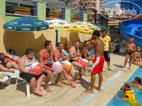 Территория очень маленькая и компактная(постоянно убирается и поливается), да и сам отель небольшой, на следующий день уже все друг друга знают, особенно если не будете лежать как тюфяк у бассейна, а участвовать в анимации, играть в волейбол и водное поло) Спиртное не пили, сок разбавленный понятное дело, поэтому покупали в магазинах себе сами, кофе неплохой и всегда в доступе) аниматор (на фото с микрофоном) у нас был просто ураган, но к концу отдыха его уволили, видимо за черезмерную прыть)))