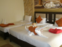 Номера не маленькие, ребенку поставили нормальную стационарную кровать, белье меняли каждый день, слоники и лебеди тож были. Два минуса - не работал кондиционер ( его включали, он работал 5 минут, потом вырубало пробку, опять лезли в щиток, включали и опять вырубало и т.д.) и.... таракашки... малюсенькие.... сантиметров по пять. У наших друзей таракашек не было... или они просто не видели, не знаю.