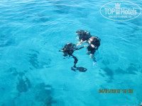 Море - по длинне аквтория отделенная буйками не большая, но зато свой весьма симпатичный риф с рыбками.