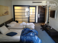 Номер. (Взяли стандартный, с видом на море на 7 этаже, по-моему номер 1407) довольно большой, хорошая мебель, все новое, низкие тумбы, стиль без "помпезности", но все очень прилично. Удобное решение -отдельная гардеробная комнатка, где есть место для чемодана, полки для обуви и кронштейн с плечиками. Получается, что весь гардероб спрятан и комната свободна. Такое редко встречается в отелях в стандартных номерах.