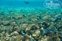 Читаю здешних писателей и диву даюсь... Рыбок нет? Люди, да заходили ли вы в море. Да там не просто рыбок много, их там просто кишит. Моя жена трусиха и боится больших глубин, а глубина там возле пантона, надо признать приличная. И тем не менее, не было ни одного дня, что бы мы взявшись за руки в масках не плавали смотреть рыбок. Видели всё, кроме мурены. Был случай, специально взяли кусок лепешки ( хоть это категорически и запрещено) Куда прятать? Понятное дело в плавки. И незаметно и "приборная часть", выглядит более чем внушительно..... :-)))))) Короче рыб и без приманки было много и как то про неё забылось... И тут осознаю, что красочность фауны возле меня, стала плотновата. Это мягко сказано. Вернее я плавал в громадном скоплении разнообразных рыб. И только после того как я почувствовал, что меня "уже хотят", иногда и покусывая за "причинное место", я вдруг вспомнил о лепешке. Если честно, к тому моменту я уже слегка напрягся. Достать хлеб просто не представлялось возможным. Рыбий народ реально пытался оторвать руки.