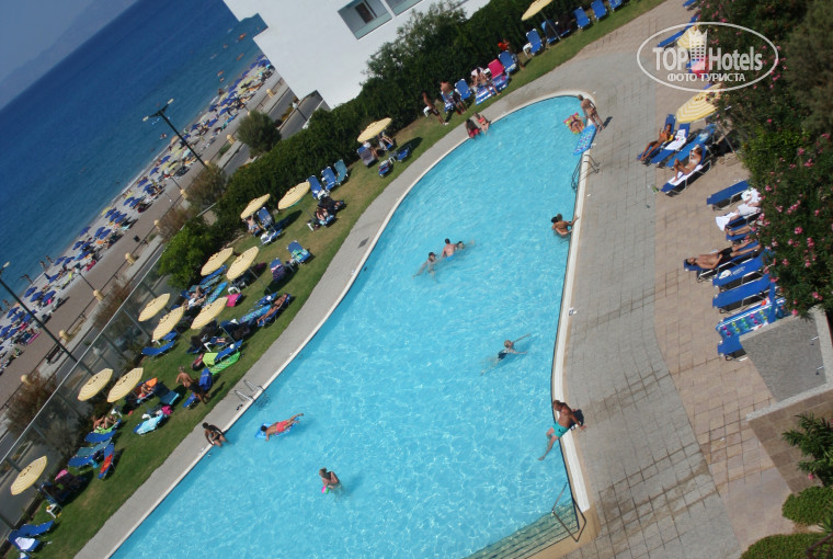 Хороший отель для отдыха в г. Родос. Нужно понимать, что это городской европейскеий отель с маленькой территорией без собственного пляжа. Если вы хотите гулять по старому городу, рыцарским крепостям, магазинчикам и лавочкам, то этот отель вам подойдет. До центра города минут 15-20 пешком, пляж рядом с отелем галечный, море там Эгейское, очень неспокойное, сильные волны, купаться невозможно практически. Мы там только в первые 2 дня поплавали нормально, один раз нас утащило далеко в море на надувных матрасах, пришвартовались совершенно в другом месте из-за ветра, и шли по трассе в купальниках, веселые волны)) . Если вы хотите мирно плавать и загорать лучше ехать в Фалираки, там спокойные бухты Средиземного моря. В отеле есть бассейн, вполне нормальный, там в основном и купались.