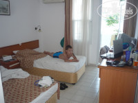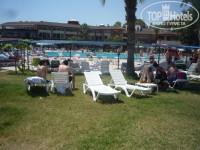 Отдыхала с сыном 10 лет.Сразу как вышла из автобуса познакомилась с девушкой моего возраста попали мы с ней в одинаковый тур,из одного города(дружим теперь и собираемся опять вместе отдыхать в этом году).На ресепшене нас отправили на обед,после мы примерно полчаса или около часа ждали номер,так как мы всегда на позитиве,для нас это время прошло быстро,пока пообщались познакомились,присмотрелись к тем,кто уезжал, а ещё на тех,кто уже пол отпуска провел там,загорелые и полупьяные в 11 дня)))Заселили в простой номер,всё работало,да и приходили мы туда только спать.Питались вполне нормально.Кто едет за номером и питанием,тем нужно искать отель дороже и лучше.Стареньким тихим семьям тоже нечего там делать,толкьо критикуют потом.Для всех кто веселый любого возраста но на позитиве,любят отрываться туда!Был минус моря вход очень не понравился ноги можно переломать,ребенка очень боялась туда отпускать,и в конце мая и начале июня еще вода была не сильно прогрета и мы больше были на бассейне.Детям очень нравятся горки и за ними там присматривают,по вечерам они гуляют человек по 20,ребенок был в восторге,для них там целая площадка.По вечерам дискотека в отеле с 23 до 2 внутри выпивка платная.Потом после можно сходить при выходе из отеля на дискотеку Томми там же есть пенная вечеринка.В отеле есть хамам очень хорошо если вы сходите в хамам с массажем тогда не сгораешь потом,реально провереномы не мазались защитными кремами вообще!В отеле хамам стоит 50 долларов,скинули за 45 нам а был первый день мы еще ничего не знали,а в последние дни узнали,что через опять же дорогу где рыночек за 20 долларов.Приборка каждый день,уборщица нас очень любила,прикалывалась делала фигурки нам сердечки да лебедя,а подруге лебедей с сигаретами:)В баре большие очереди вечером за алкоголем,но вы понимайте,что отель на 1150 человек и половина русских любителей выпить:)Вообщем я советую,едьте на позитиве и у вас будет отличный отдых!Может кому-то мой отзыв поможет не грустить,после других отзывов.Отличного отдыха туристы:)