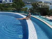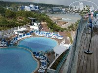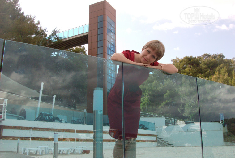 Отдыхал в мае-Строители возвели практически новый отель за полгода.Просто супер.За границей бываю 2-3 раза в год,поэтому сравнивать есть с чем.Отличный дизайн отеля: каскад бассейнов,удобный панорамный лифт к морю,красивая зона отдыха на крыше 6-го этажа с шикарным бассейном и видом на море.Вокруг всех бассейнов деревянный пол -большой плюс-не часто такое увидишь!!! Удобное расположение аквапарка -посещать лучше с утра и после 16 часов .Сауна с релаксирующей музыкой и жк панелью! Платформа тоже новая на 1уровне-бар на втором уровне насыпан белоснежный песок-отлично смотрится! Благодаря расположению и скалам море в этом месте довольно чистое в 100 метрах правее платформы руками ловил осьминога и крабов! Туда-же приплывают яхты с дайвингистами из-за того что в этом месте вода даже во время шторма практически не мутнеет. Заселили быстро на -1 этаж один из самых удачных по расположению! Небольшой минус-номер чуть-чуть хотелось бы пошире. Теннисный корт помогал согнать жирок,а сгонять было что -кормили в мае как на убой; готовили шашлыки и люля-кебаб, и шаурму, и рыбину огромную запекали.