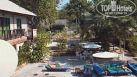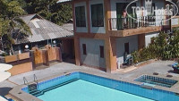 Территория небольшая,но очень зеленая. Несколько бунгало, там круглый год живут немцы-пенсионеры с тайками. З двухэтажных здания по 8 номеров -стандарт,куда селят русских. 2 бассейна(до 20часов можно купаться) и там же джакузи. Персонал очень приветливый и не навязчивый. Убирают каждый день,меняют постель,2 бутылки воды бесплатно.Чаевые не оставляли,на качество уборки не влияет.В номерах скромно,но уютно,живности нет. 6 русских каналов TB,На территории ящерки и птички поют.Охрана дежурит ночью.Сейф на ресепшен.