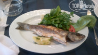 Много свежих овощей, салаты, оливки, отдельный макаронный стол, я всегда брала рыбу на гриле, но можно было питаться мясом, курицей, много колбасной нарезки и всего-всего.