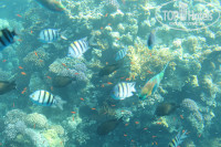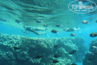На пляже коралловый риф, можно заходить в море до кораллов, либо нырять с пантона, обязательно с маской, т.к. подводный мир очень богатый и наикрасивейший!! (мы просто ходили по морю до кораллов, а нырять с пантона не решились)