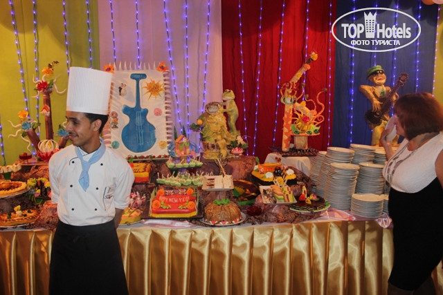 НГ НОЧЬ!!!! единственное что было супер!!! огромнейший шатер, по периметру еда. Офигенная еда! Просто высший класс. Народу тьма. Музыку хоть хорошую включили. Вот это праздник был настоящий. Встречали НГ конечно же по Московскому времени, НАШИ встали в 22часа по их времени как орать, так и начался праздник. Вот только еду всю быстренько убрали. Уносили. Точнее увозили. Грузили все в грузовик, целые блюда, нетронутые торты...Может быть в другой отель....