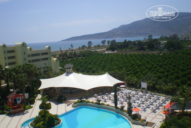 отель находится в бухте, где кроме самого отеля больше ничего нет, только апельсиновые рощи по обе стороны бухты, что делает вид из окна нереально красивым - море и стройные ряды апельсиновых деревьев)))
